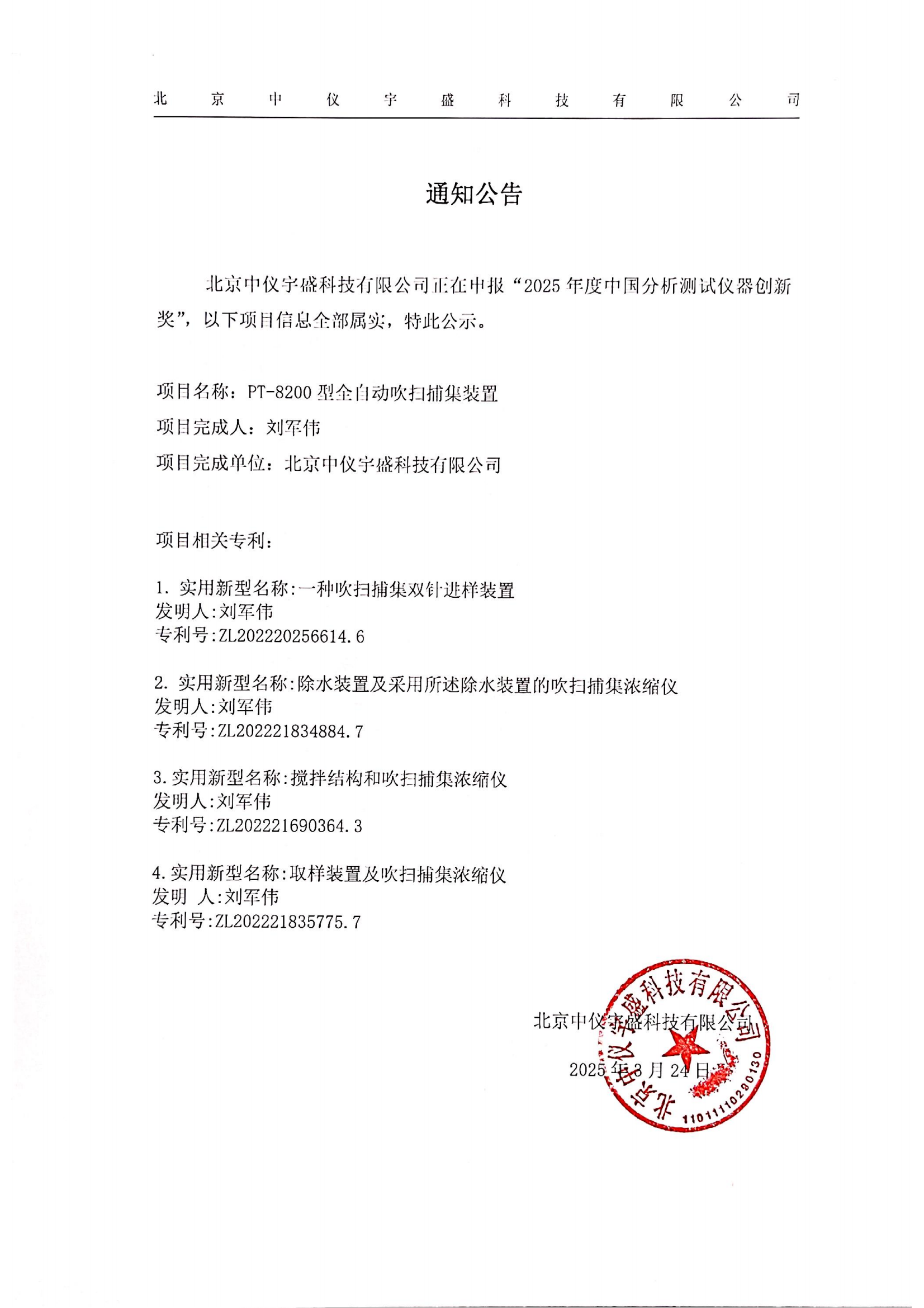 關(guān)于北京中儀宇盛申報(bào)“2025年度中國分析測試儀器創(chuàng)新獎(jiǎng)”的